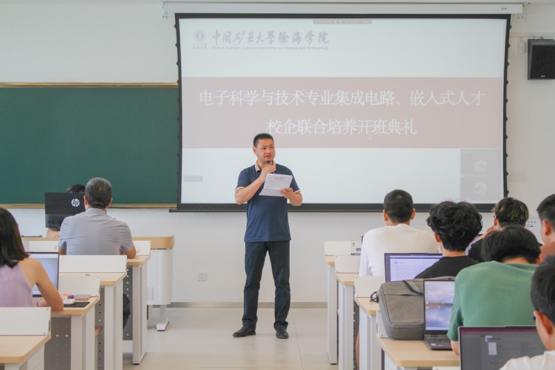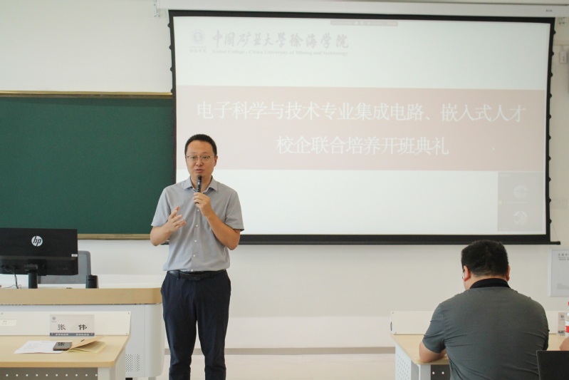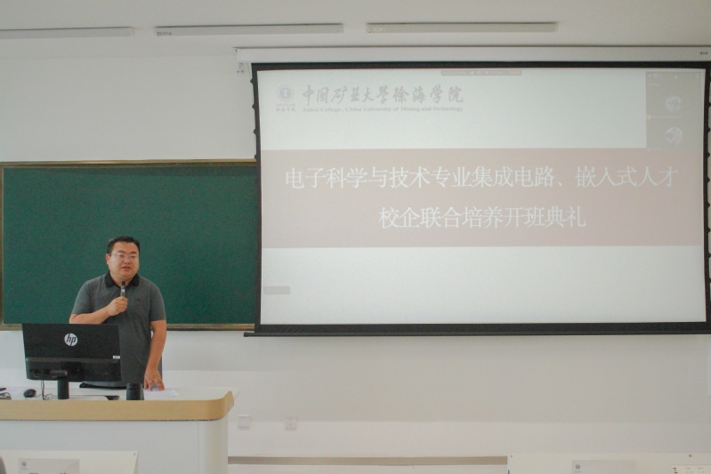 9月1日上午,中国矿业大学徐海学院电子科学与技术专业集成电路、嵌入式人才校企联合培养开班典礼在大学路校区力行楼A402教室举行,信电系副主任胡明主持典礼。