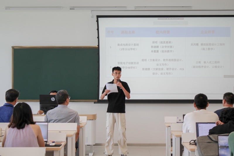 成都芯维能电子科技有限公司代表分享了集成电路领域的发展近况,并且从开课内容、时间安排、师资配备等方面,对集成电路基础实训课程进行了介绍,期望能将行业一线的实践经验融入课堂教学,助力学生提升解决复杂技术难题的能力。南京信盈达电子技术有限公司代表则对嵌入式技术及其发展现状做了简要说明,并介绍了本次智能电子实训课程相关情况。