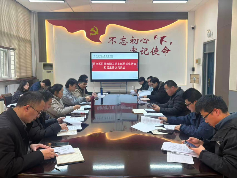 为深入学习贯彻党的二十届四中全会精神,严格落实中央八项规定精神,持续夯实基层党支部建设根基,3月18日下午,信电系于主楼104室召开全系教职工党支部组织生活会暨民主评议党员大会。学院常务副院长于忠华出席会议,信电系教工党支部书记、副主任胡明,教工党支部副书记、学工办主任许新富及全系教职工党员参加会议,会议由胡明主持。