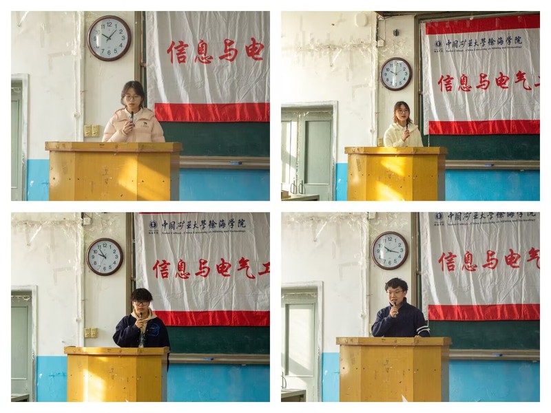 为促进信电系学风建设良性发展,激励信电学子拼搏向上,12月26日,信电系力行学子报告会于一南101教室顺利召开。系团总支书记、2024级辅导员张岩松,2025级辅导员张旭曈、张宗汾,学生代表唐郡瑶、陆晋鹏、王立硕、沈俊池出席了活动,2025级全体学生参加了报告会。